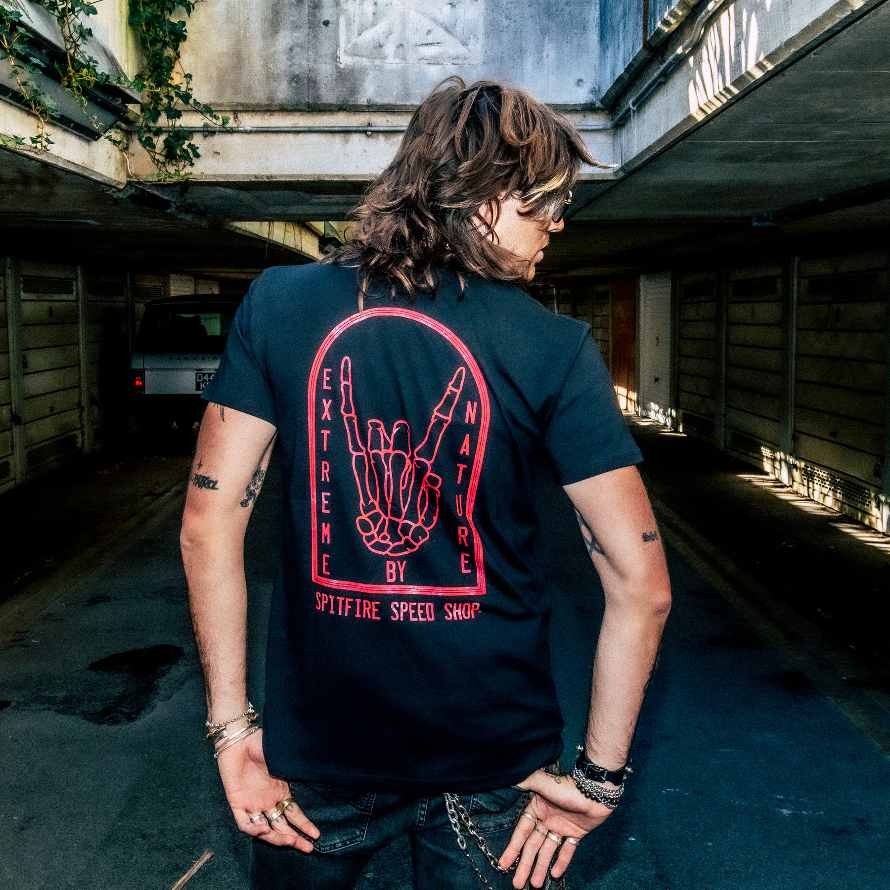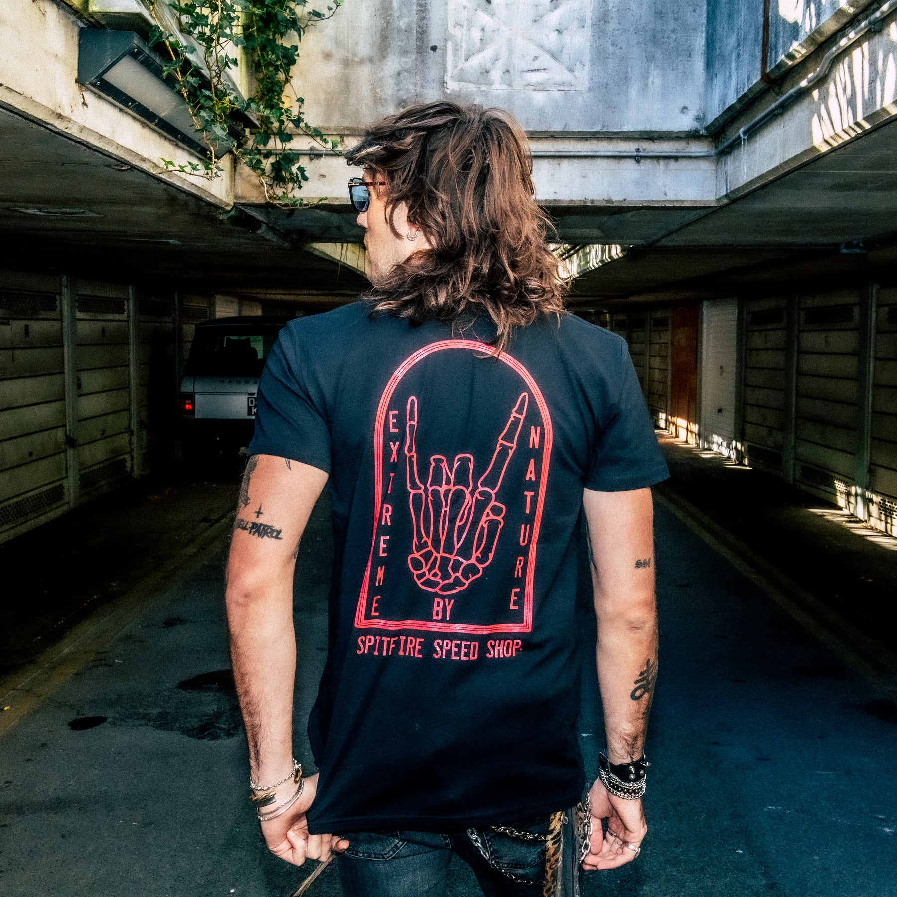 Born for the wild ones. The Extreme By Nature t-shirt is a straight-up statement piece — featuring our iconic skeletal rock hand design. Built for those who live loud, ride harder, and never tone it down.