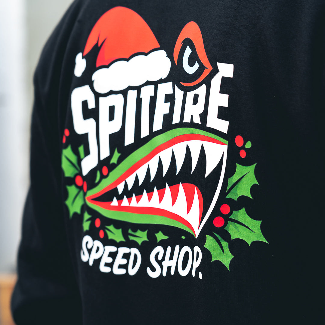 Built on a warm, comfortable sweatshirt that keeps the moto vibe strong while adding a touch of Christmas chaos. A proper winter essential for any Spitfire fan.
