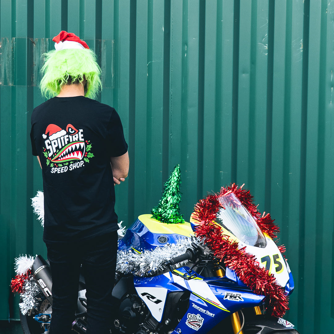 Printed on our staple t-shirt with that clean Spitfire look you already know, just dialled into holiday mode. A proper mix of moto culture and Christmas chaos.
