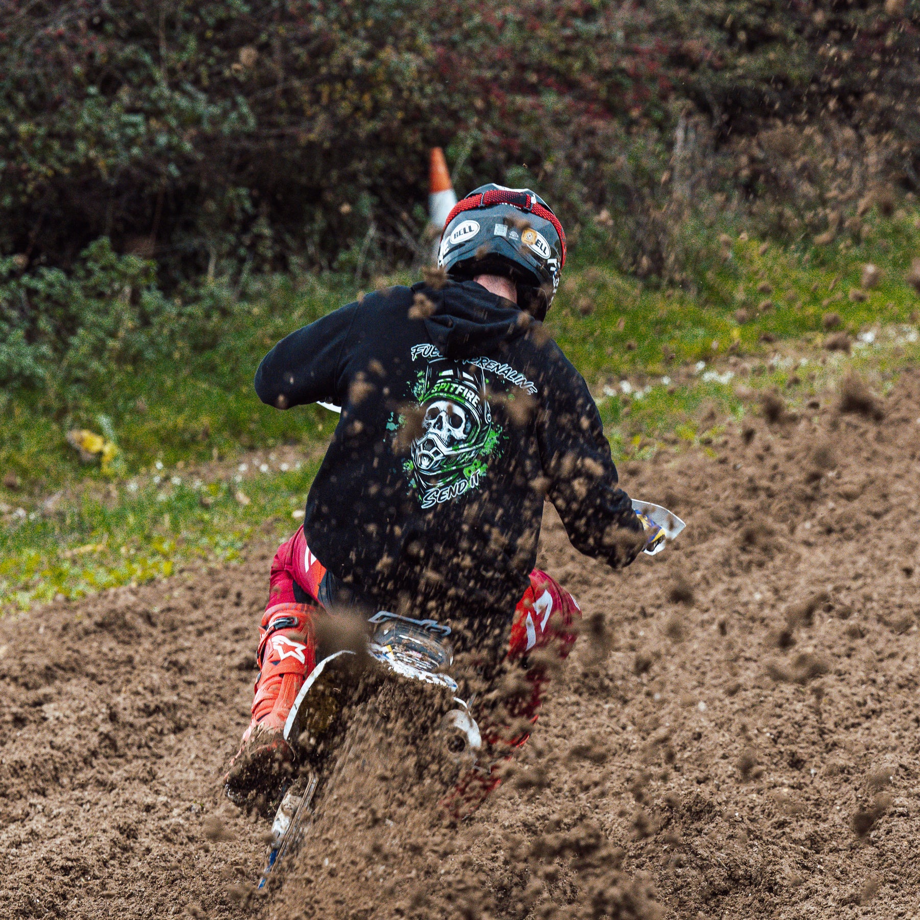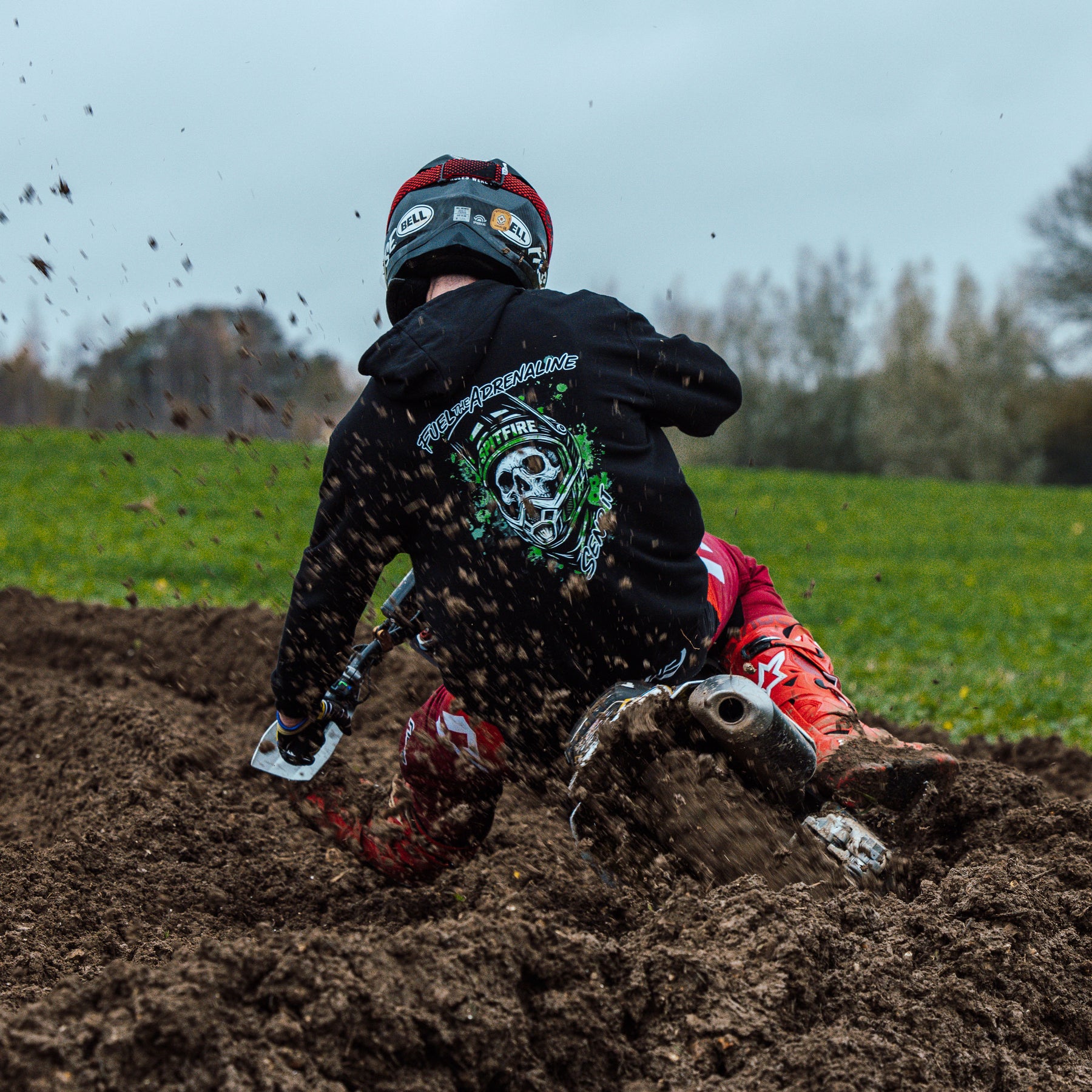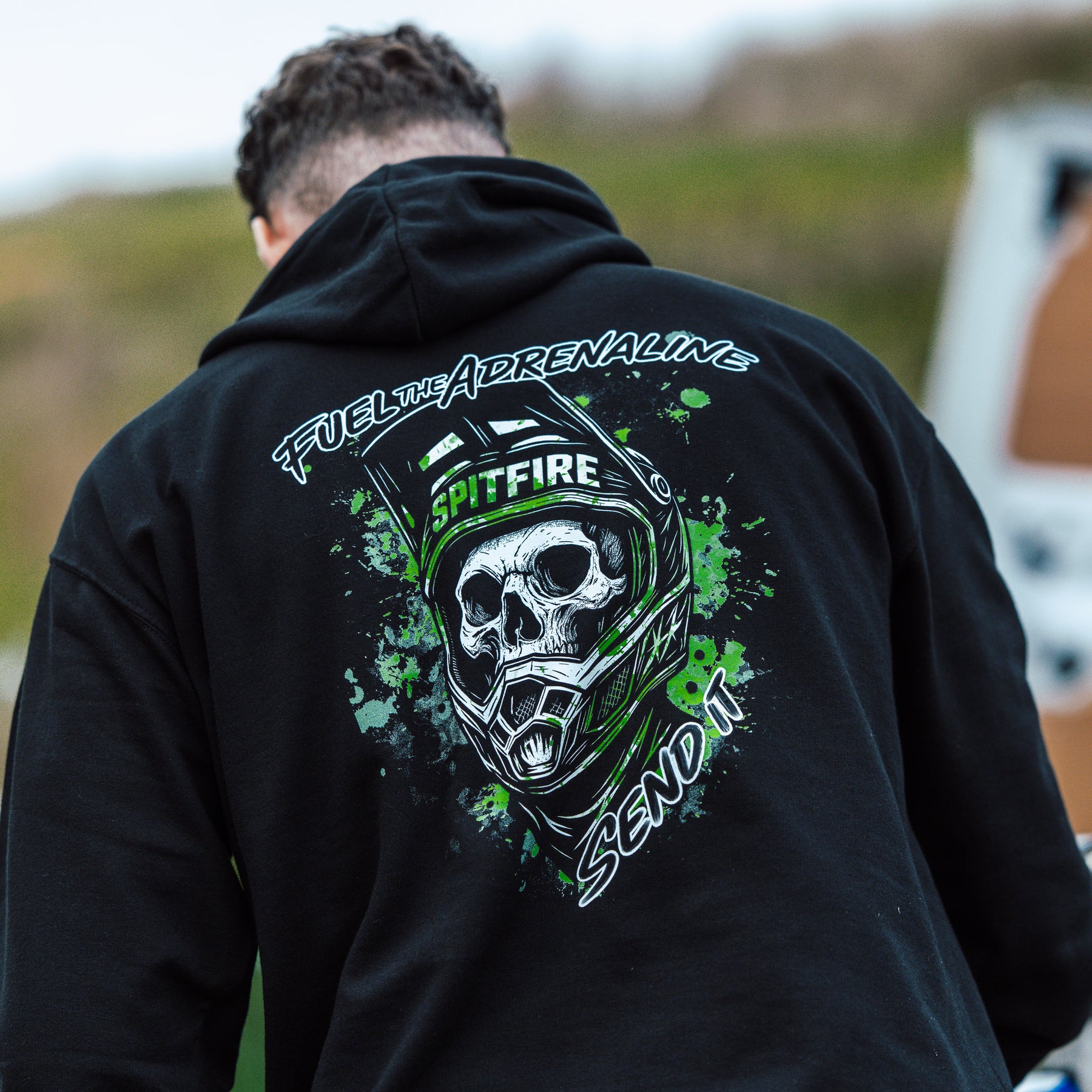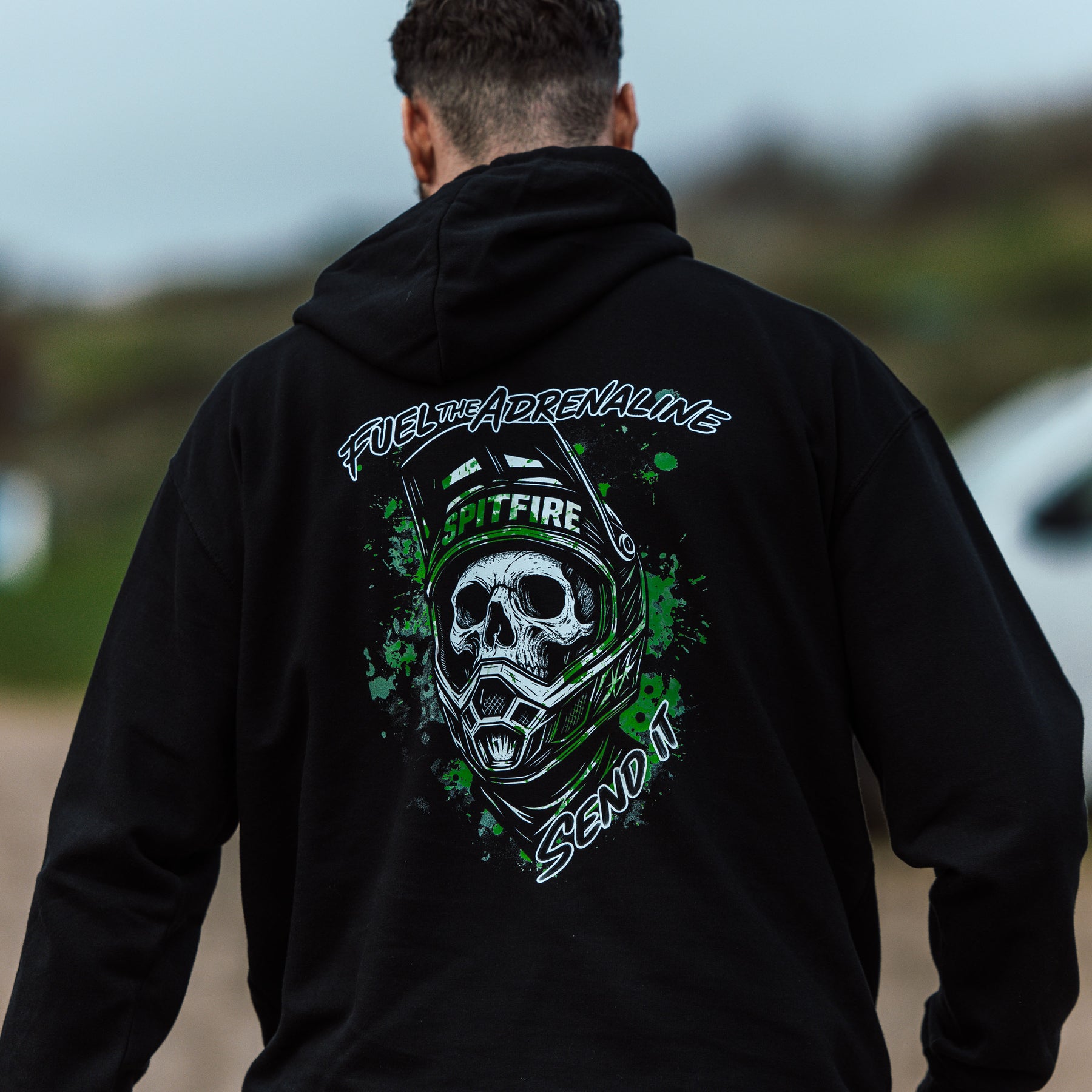 Born for the wild ones. The SEND IT hoodie is our gnarliest design yet— featuring a full face dirt helmet with the screaming skeleton design and the Fuel The Adrenaline slogan. Built for those who live for the track, send it harder, and never tone it down.