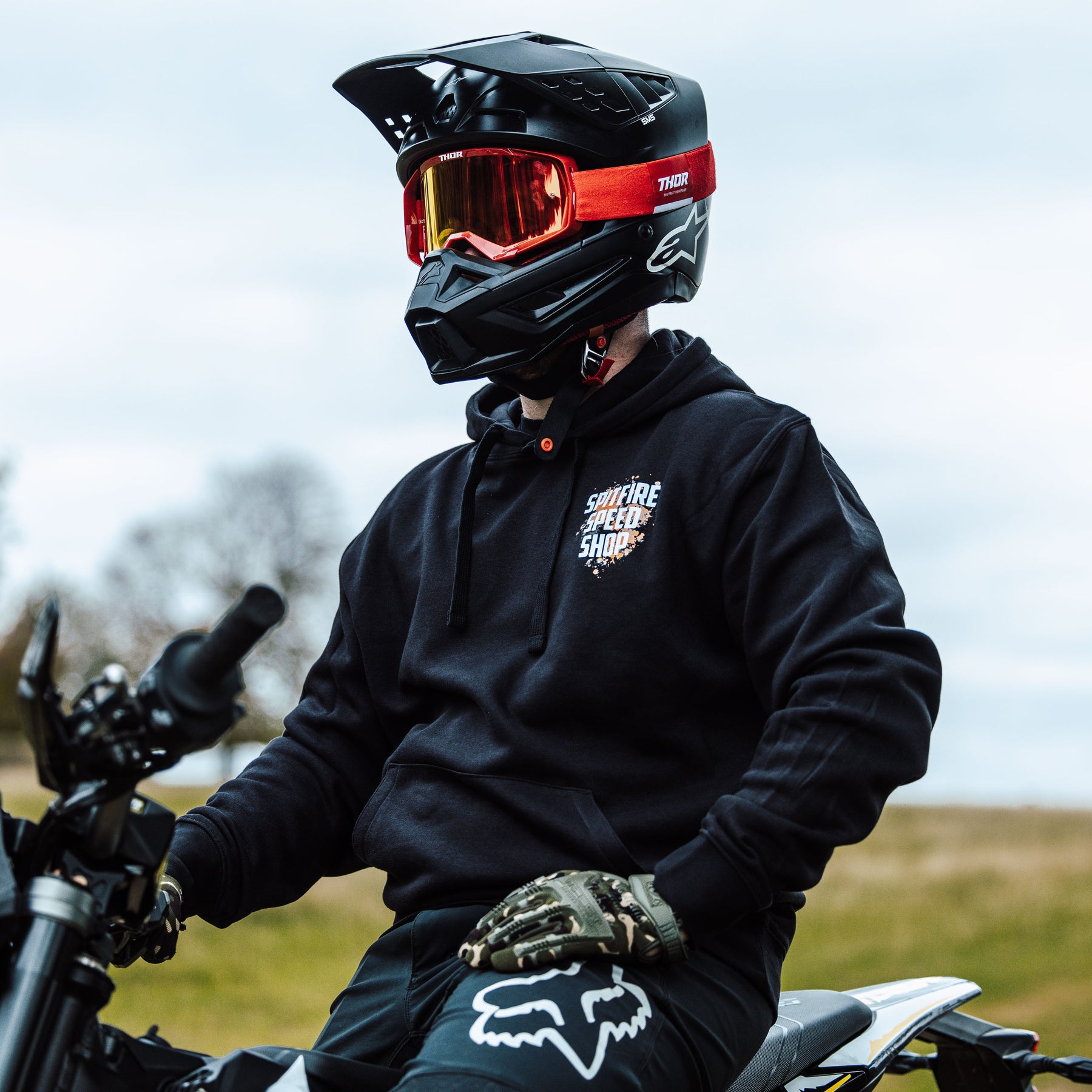 Spitfire Speed Shop – SEND IT Hoodie with orange logo.