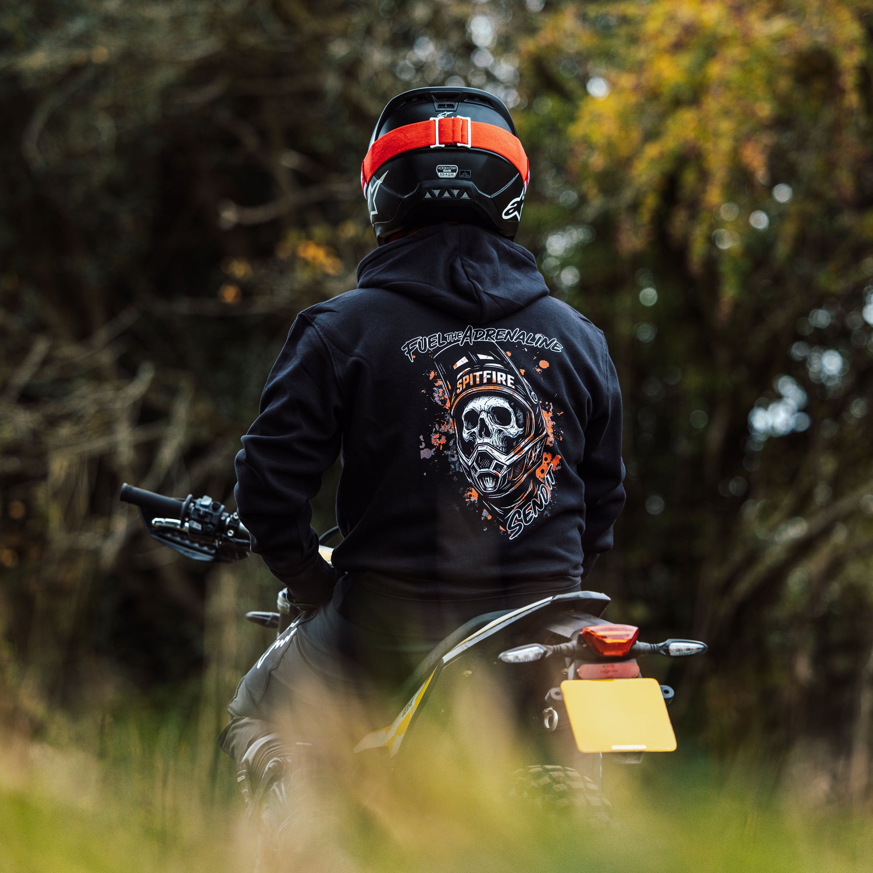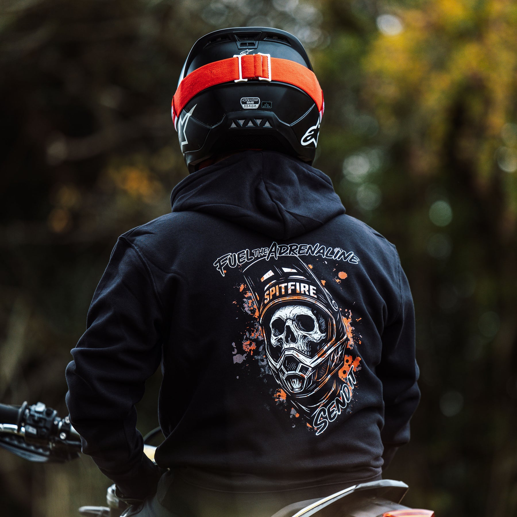Born for the wild ones. The SEND IT hoodie is our gnarliest design yet— featuring a full face dirt helmet with the screaming skeleton design and the Fuel The Adrenaline slogan. Built for those who live for the track, send it harder, and never tone it down.