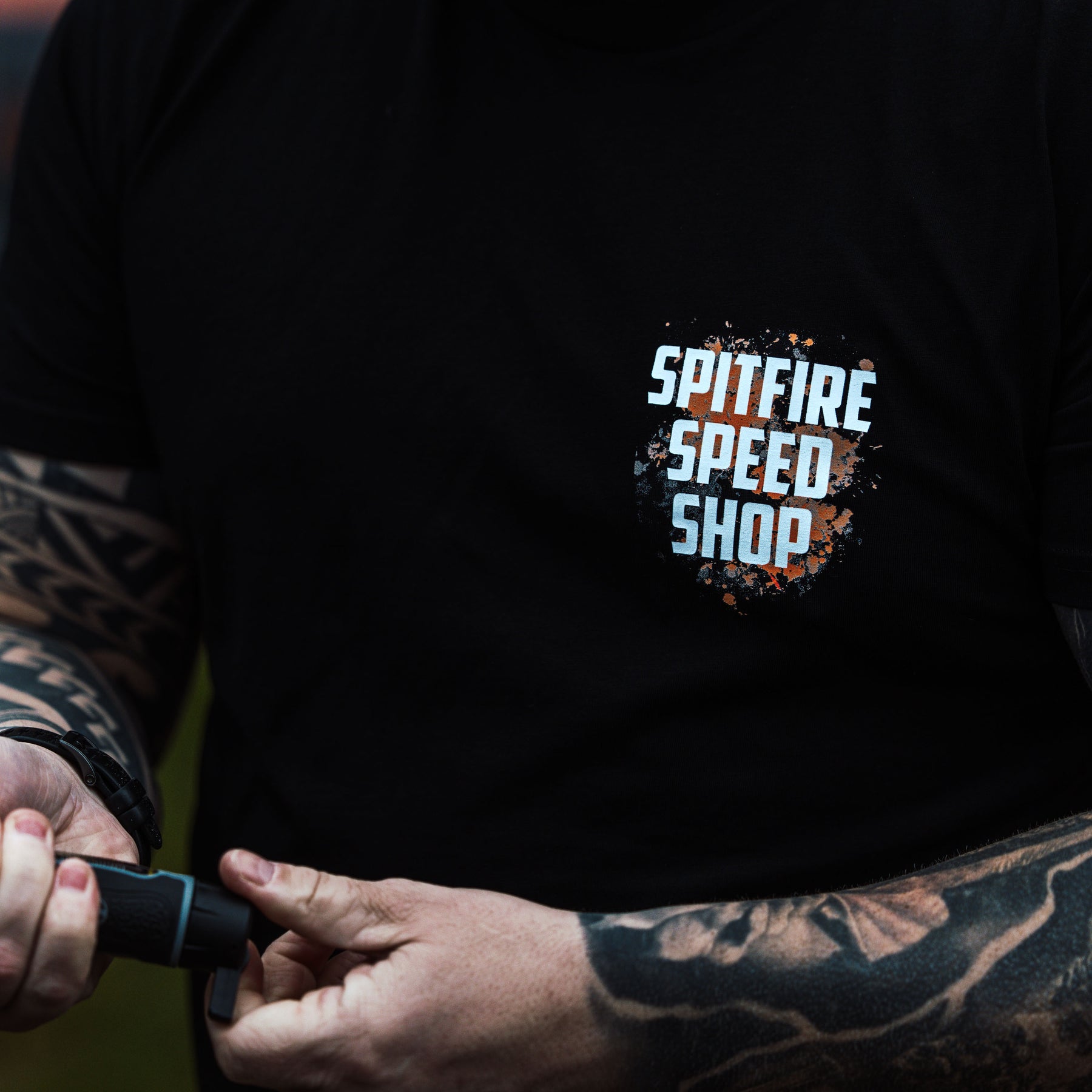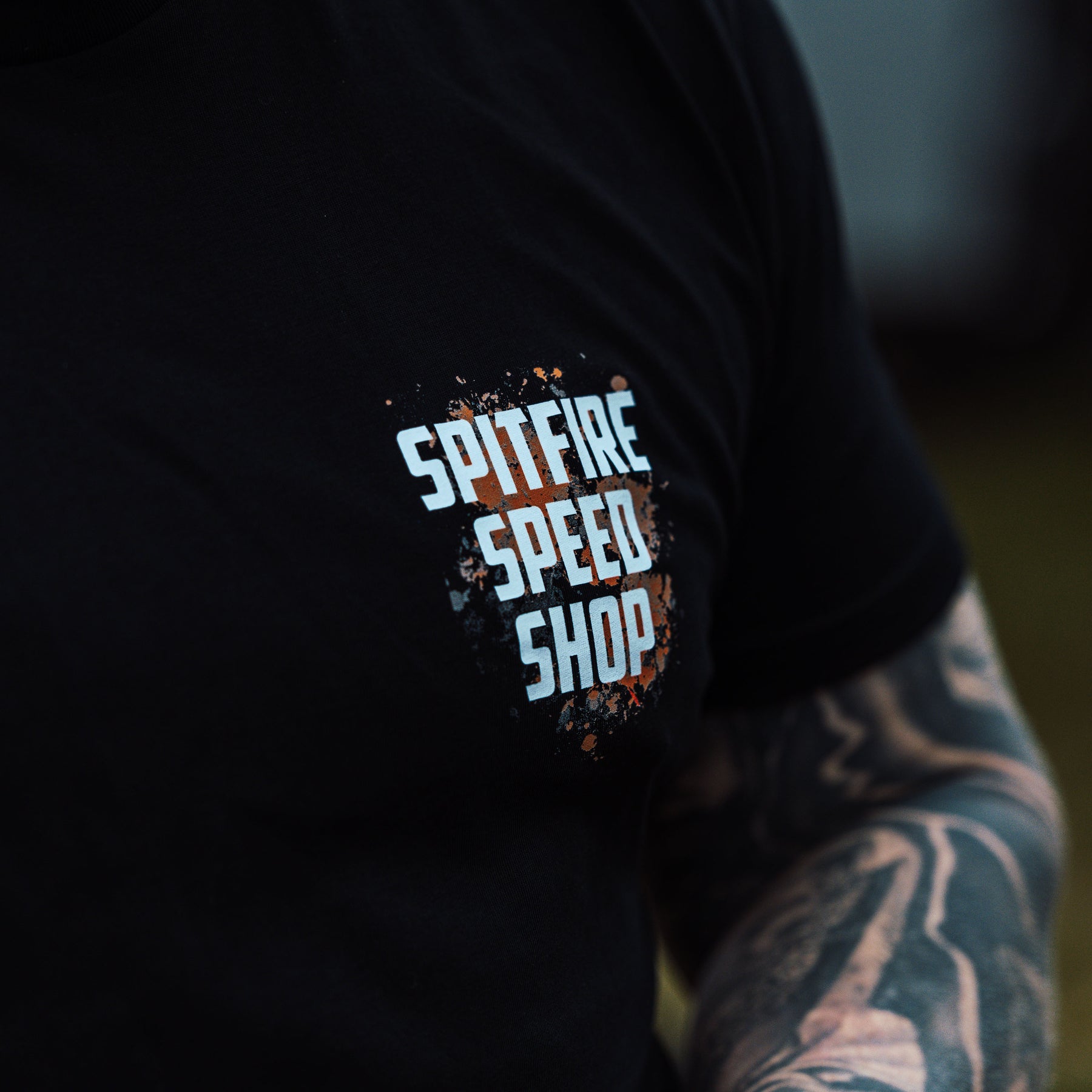 Spitfire Speed Shop – SEND IT T-Shirt with orange logo.